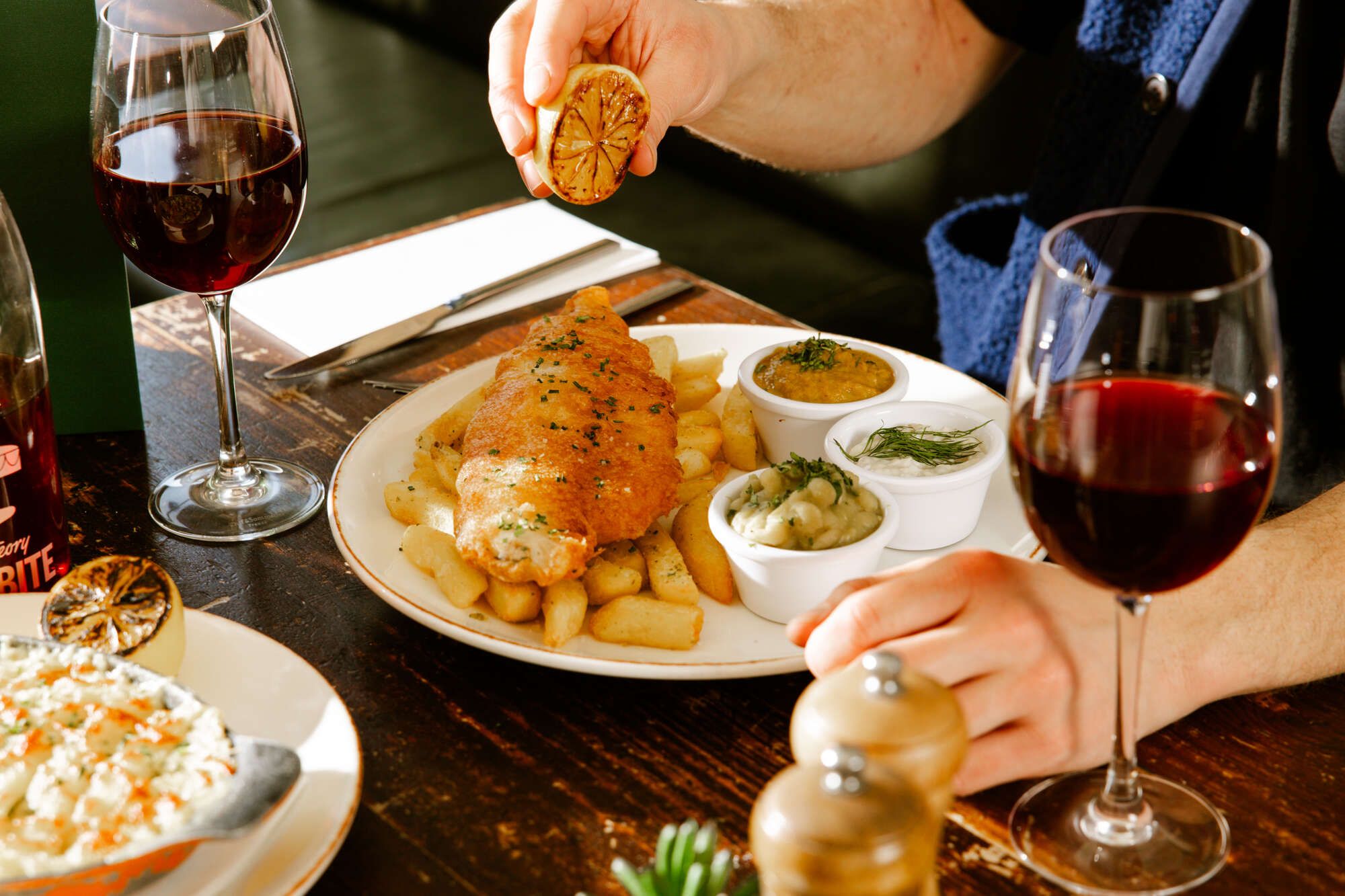 Think traditional dishes and seasonal favourites – from our cyder battered fish and chips, hearty pies with mash, and mouth-watering Sunday Roasts to our vegan sweet potato harissa cakes or our creamy whipped tofu with beetroot and walnut gremolata.