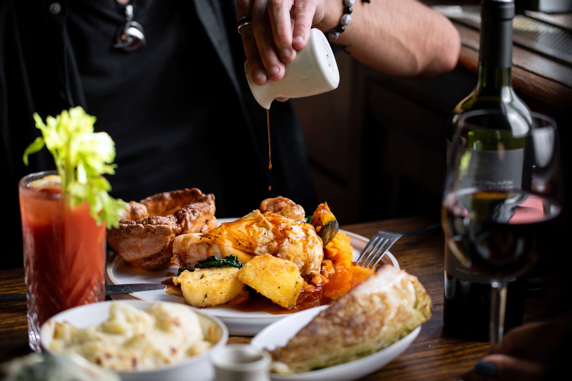 Think traditional dishes and seasonal favourites – from our cyder battered fish and chips, hearty pies with mash, and mouth-watering Sunday Roasts to our vegan sweet potato harissa cakes or our creamy whipped tofu with beetroot and walnut gremolata.